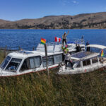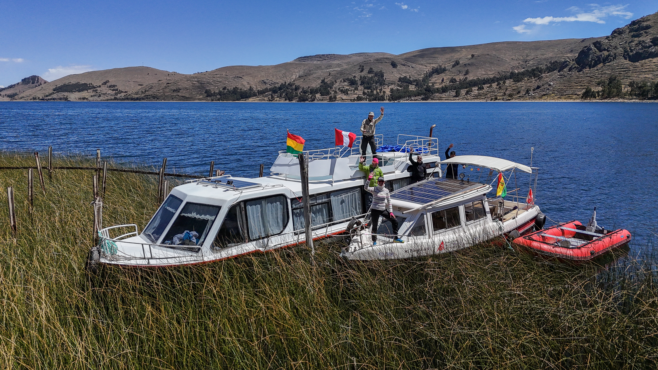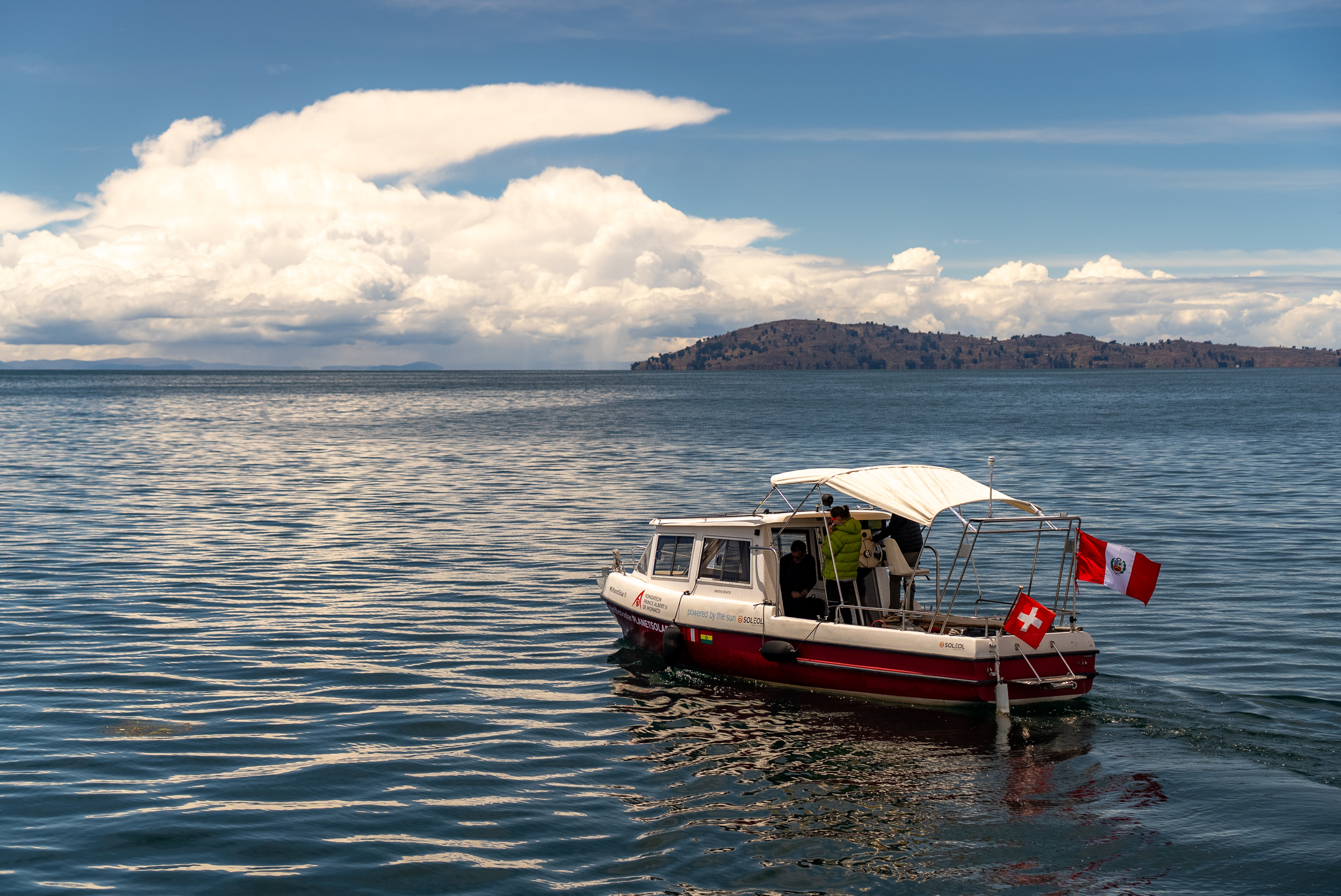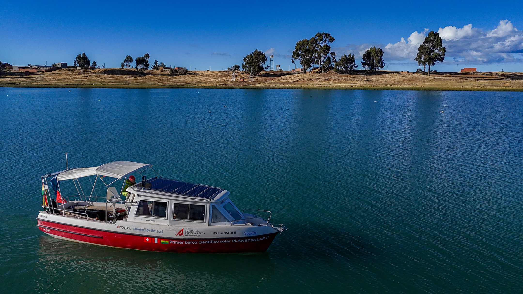 Depuis mardi dernier 30 septembre, PlanetSolar II sillonne les eaux du lac Titicaca. Pour une première mondiale : la première circumnavigation à l’énergie solaire du plus haut lac navigable du monde ! Le bateau battant pavillon suisse mène, avec l’Autorité binationale de surveillance du lac (ALT), une mission scientifique soutenue par la Fondation du Prince Albert II de Monaco. Comparaison du rendement des panneaux solaires à 4’000 m par rapport au 400 m du lac de Neuchâtel en Suisse, mais aussi examen de santé des eaux du Titicaca, écosystème menacé par l’eutrophisation et la navigation avec moteurs à explosion. L’océanographe Xavier Lazzaro est à bord, ainsi que Claudio Von Planta pour le film documentaire. Voici quelques unes de ses images, somptueuse ! PlanetSolar II, parti de Puno, vient d’entrer dans les eaux boliviennes du lac, après les îles d’Amantani et de Soto. Périple à suivre sur nos réseaux. Et notre carte en continu montre la progression du bateau. En avant toute !