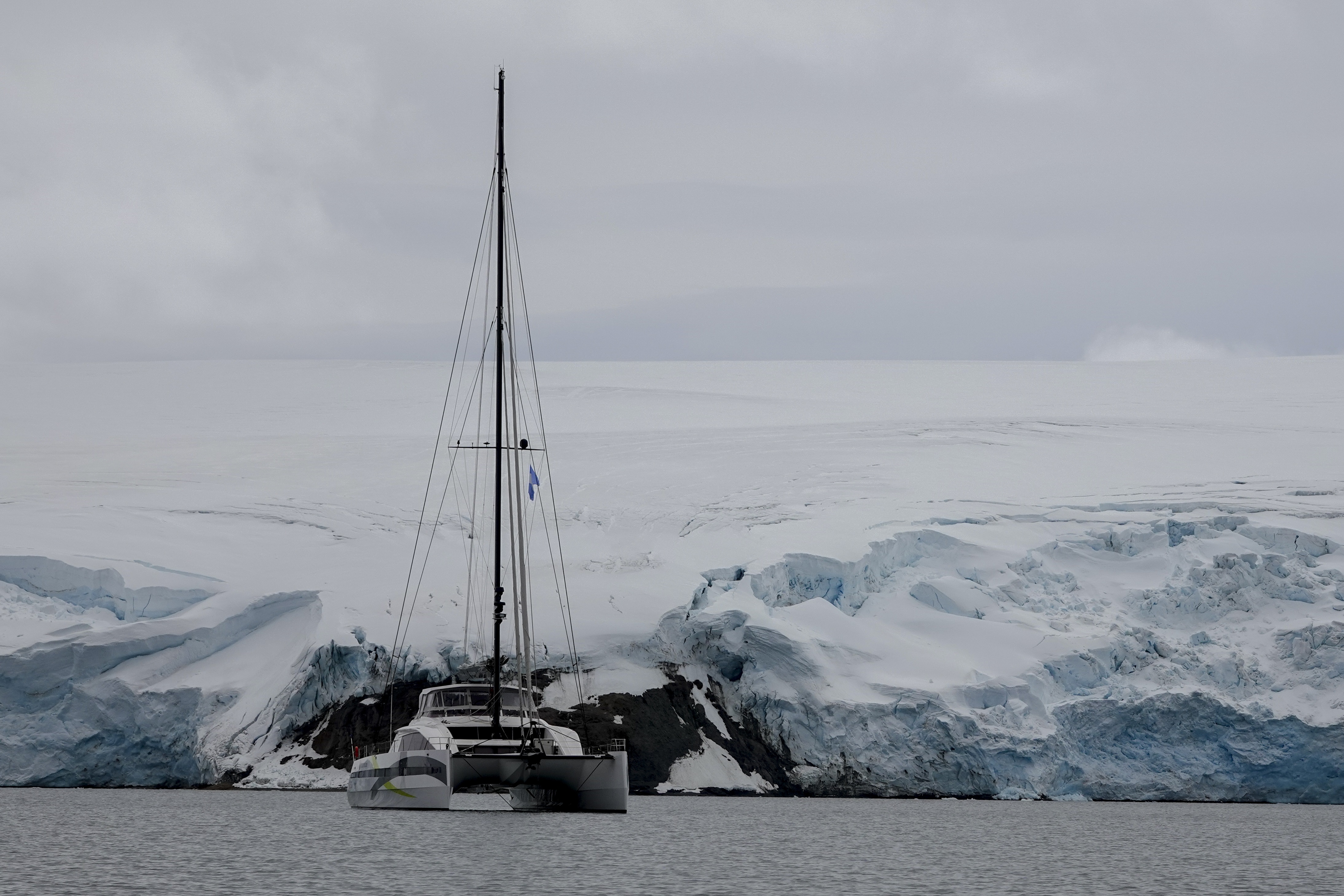 De retour au bateau, je m’attèle au montage du kayak solaire tandis qu’Eric, Laurence et Bertrand partent visiter la base scientifique coréenne, située non loin de là. Alejandro invite les chefs de service de la base argentine à bord du catamaran. Ils ne viennent pas les mains vide et nous amènent du jambon cru et de la copa! Alejandro vante l’hospitalité argentine et se demande comment nos amis seront accueillis chez les Coréens…
